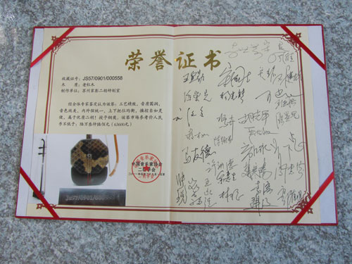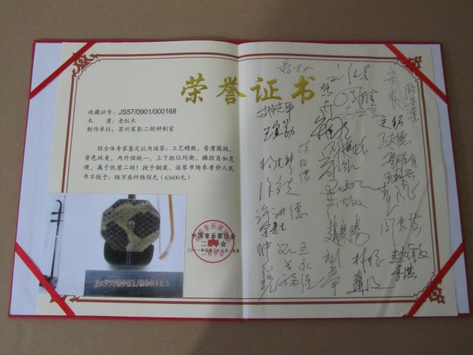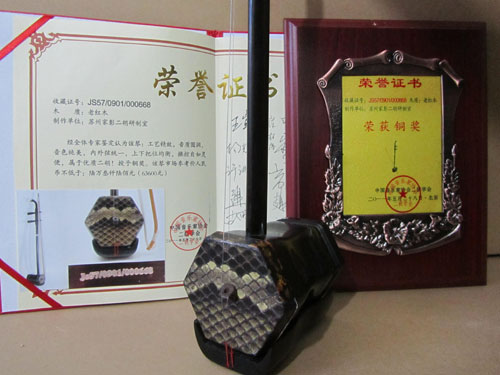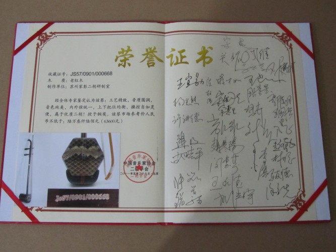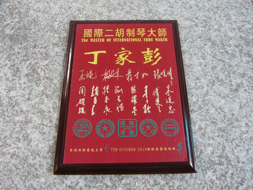 二胡制作大師丁家彭先生1949年出生樂(lè)器世家,17歲隨其祖父學(xué)琴藝,并深得精髓,其聰穎好學(xué),悉心鉆研與 探求二胡制作,博得同行的欽佩贊許,更得了許多知名演奏家的稱贊,充分認(rèn)識(shí)到二胡制作每個(gè)環(huán)節(jié),都對(duì)二胡制作都有影響力,因此對(duì)二胡的選材,選料,蟒皮都十分嚴(yán)格,二胡整體穩(wěn)定性良好,環(huán)境干擾影響極小。